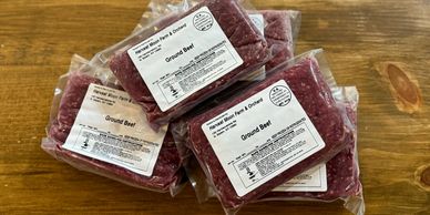 Our 100% grass-fed, antibiotic-free and hormone-free cattle are raised entirely outdoors and roam freely over hundreds of acres of wide open pasture. Each week, members will receive a one pound package of ground beef.