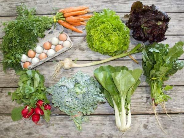 Some examples of items found in an early July, half share box could include carrots, lettuce, spinach, bok choy, kale, radishes, garlic and eggs.